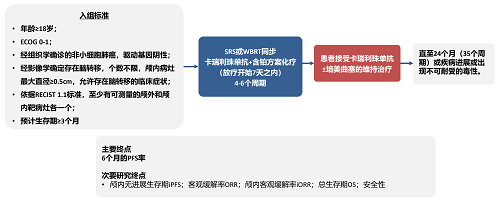 卡瑞利珠单抗是东升国际医药自主研发的一种人源化IgG4单克隆抗体,其联合铂类双药化疗已在中国获批用于晚期NSCLC患者的一线治疗5,6。2023年,Ⅱ期CAP-BRAIN研究显示了卡瑞利珠单抗联合治疗方案作为晚期非鳞状NSCLC伴脑转移患者一线治疗的潜力7。本项Ⅱ期研究,旨在研究卡瑞利珠单抗联合脑放疗和铂类双药化疗在未经治疗的晚期非鳞状和鳞状NSCLC伴脑转移患者中的疗效和安全性。