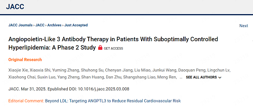 在本届ACC年会上,由浙江大学医学院第二附属医院心内科王建安院士担任主要研究者的血管生成素样蛋白3(ANGPTL3)单克隆抗体SHR-1918的Ⅱ期临床研究(研究编号SHR-1918-2011,NCT06109831)亮相“临床和研究视野”专场2,并由谢小洁教授在ACC大会现场汇报了该研究成果。同时,该研究全文也在国际心血管领域权威期刊《美国心脏病学会杂志》(JACC)(IF=21.7,Q1)同步发表3。